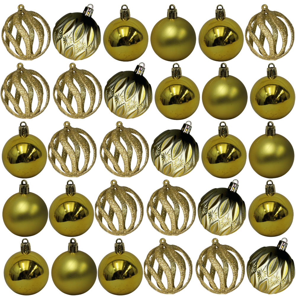 Bolinha de Natal Mix de Modelos c/ 30 Peças 6cm - Dourado UNICA