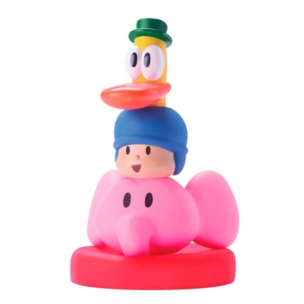 Ele conta com 1 cabeça do Pato, 1 cabeça do Pocoyo e 1 cabeça da elefante Elly.