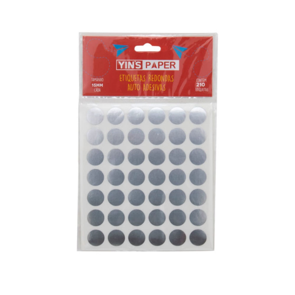 Etiqueta Redonda Auto Adesiva 15mm - 210 Unidades - Yins Paper - PRATA