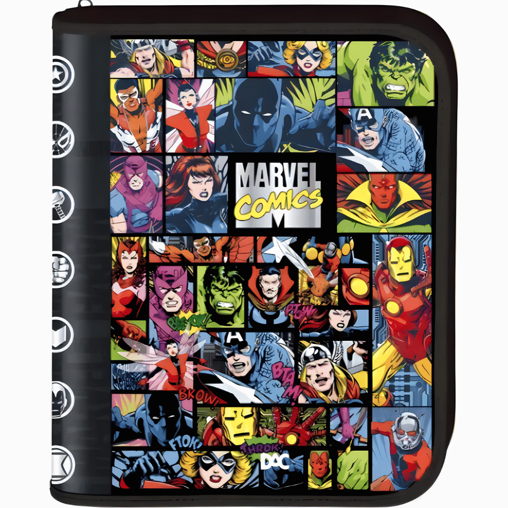 O Fichário Universitário Argolado Marvel com Zíper da DAC é a escolha perfeita para quem quer praticidade e estilo no dia a dia. Com estampa oficial e design marcante, valoriza o universo dos heróis mais icônicos. Possui 48 folhas, ferragem resistente com argolas que facilitam a organização e fechamento em zíper que protege todo o conteúdo. Ideal para escola, faculdade ou curso, une funcionalidade, durabilidade e a força da marca Marvel em um só produto.