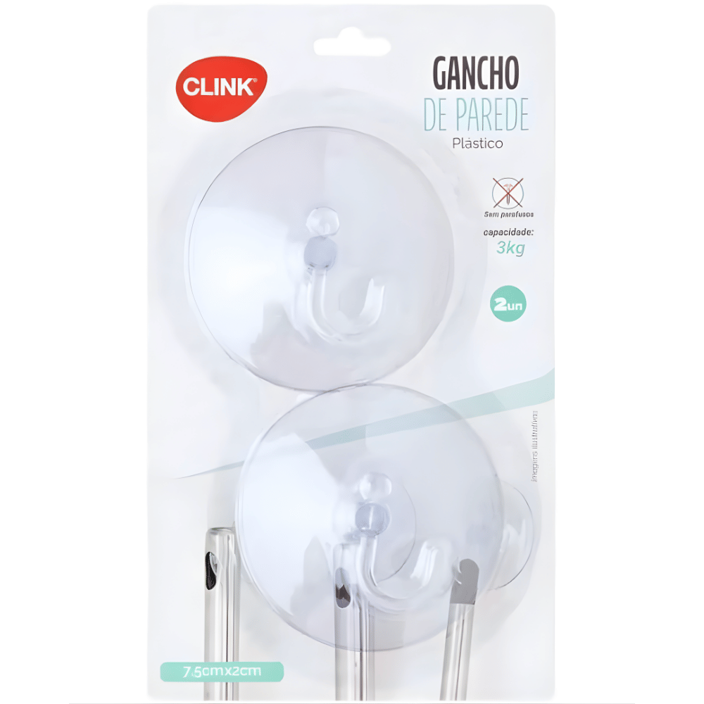 Gancho de Parede c/ Ventosa 2 Peças - Clink UNICA