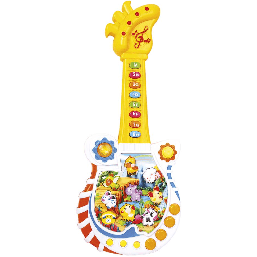 A Guitarra Educativa Paradise 3+ da DM Toys é um brinquedo interativo que combina música e aprendizado em uma proposta dinâmica para a primeira infância. Com sons de animais e a identificação do nome de cada um, estimula a associação auditiva e o reconhecimento, enquanto as músicas incorporadas tornam a experiência mais envolvente. Os quatro modos diferentes ampliam as possibilidades de uso, permitindo variar a forma de interação e manter o interesse ativo por mais tempo. O formato de guitarra incentiva a coordenação motora e a criatividade ao simular o ato de tocar, transformando a brincadeira em um momento de exploração sonora e descoberta. É uma opção funcional para quem busca unir diversão, estímulo sensorial e aprendizado básico em um único brinquedo.