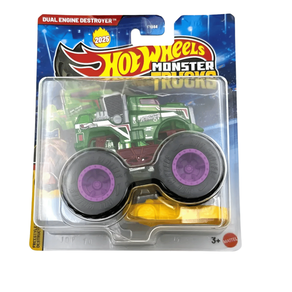 O incrível Monster Truck Dual Engine chega para dominar as pistas com toda a potência da linha Hot Wheels! Com um visual robusto nas cores verde com rodas roxa, este veículo traz um design agressivo e cheio de personalidade, equipado com motor duplo aparente e rodas gigantes, pronto para enfrentar qualquer desafio nas arenas de destruição.Com detalhes marcantes e acabamento vibrante, essa miniatura proporciona corridas cheias de ação, manobras radicais e muita diversão nas brincadeiras. Seu estilo único combina força e velocidade, tornando cada corrida ainda mais emocionante.Ideal para crianças a partir de 3 anos e também para colecionadores apaixonados pelo universo Hot Wheels, o Monster Truck Dual Engine é perfeito para criar desafios, aventuras e batalhas incríveis nas pistas.Prepare-se para acelerar, esmagar obstáculos e viver grandes aventuras com mais um poderoso Hot Wheels Monster Truck!Diversão garantida para pequenos pilotos e fãs da coleção Hot Wheels!