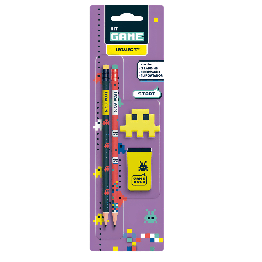 Prepare-se para um ano letivo cheio de energia com o Kit Escolar Game da Leo&Leo! Perfeito para quem ama o universo dos jogos, esse kit traz estampas iradas inspiradas no mundo gamer, deixando o material escolar muito mais estiloso e cheio de atitude. O conjunto contém 4 peças essenciais para o dia a dia: dois lápis de escrever resistentes e macios, uma borracha prática para apagar com facilidade e um apontador eficiente para manter o lápis sempre pronto para a próxima “fase”. Produzido com materiais de qualidade, garante durabilidade e praticidade na rotina escolar.
