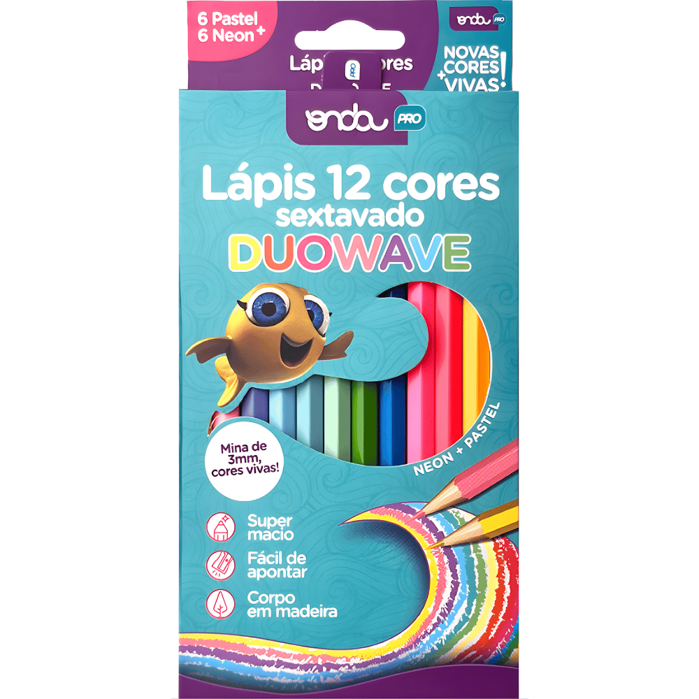 Dê vida às suas criações com o Lápis de Cor Sextavado Duowave 12 Cores da Onda Pro! O estojo reúne 6 tons pastel e 6 cores neon vibrantes, oferecendo versatilidade para destacar e suavizar seus desenhos com perfeição. Com minas de 3mm, garantem traços macios, intensos e resistentes à quebra. Feitos em madeira de alta qualidade, proporcionam conforto ao desenhar e apontam facilmente. Ideal para artistas, estudantes e apaixonados por cores!