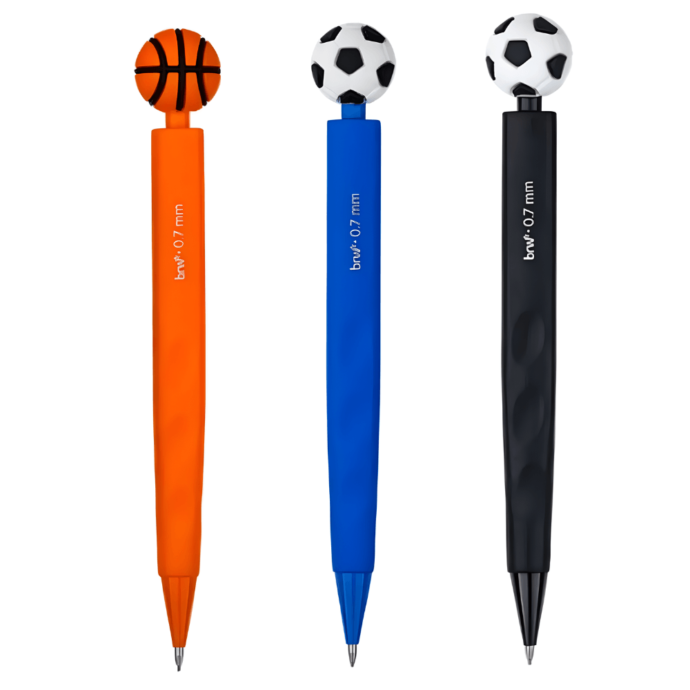 Energia, estilo e desempenho em cada traço! A Lapiseira Sports da BRW é ideal para quem ama esportes e quer levar essa paixão para a rotina de estudos ou trabalho. Com ponta 0,7mm, proporciona escrita macia, traço uniforme e ótima precisão para anotações, atividades e desenhos. O grande destaque fica por conta das bolinhas decorativas no topo, inspiradas em basquete ou futebol, que deixam o visual muito mais divertido e cheio de personalidade.