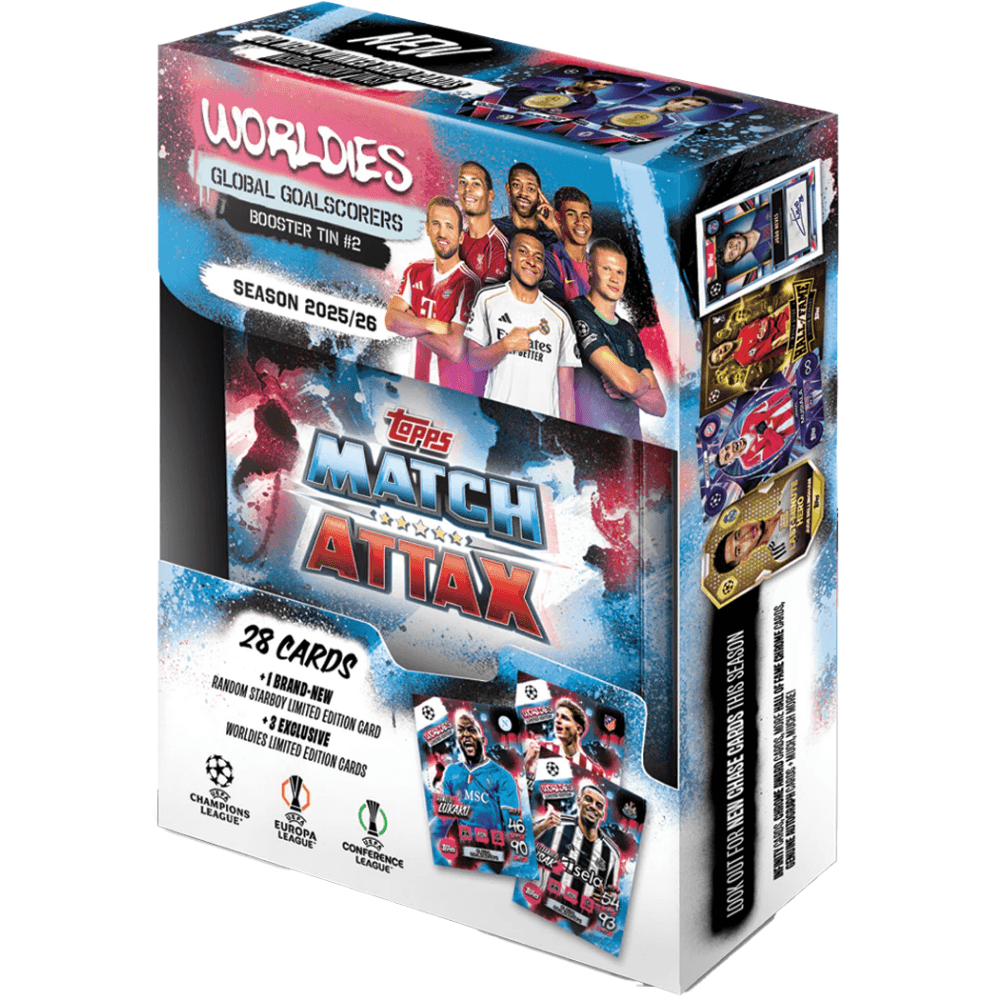 A Match Attax Worldies Global Goalscorers Booster Tin #2 Season 2025/2026 da Topps é ideal para quem quer fortalecer a coleção com cartas focadas em jogadores decisivos dentro da UEFA Champions League. Com 28 cards inclusos, proporciona uma abertura equilibrada, trazendo variedade suficiente para encontrar nomes que fazem a diferença tanto na organização da coleção quanto nas partidas do Match Attax. A linha Global Goalscorers destaca atletas reconhecidos pela capacidade de definir jogos, tornando cada carta mais interessante de descobrir, trocar ou utilizar em estratégias. Uma escolha prática para manter a coleção ativa e elevar o nível a cada nova adição.