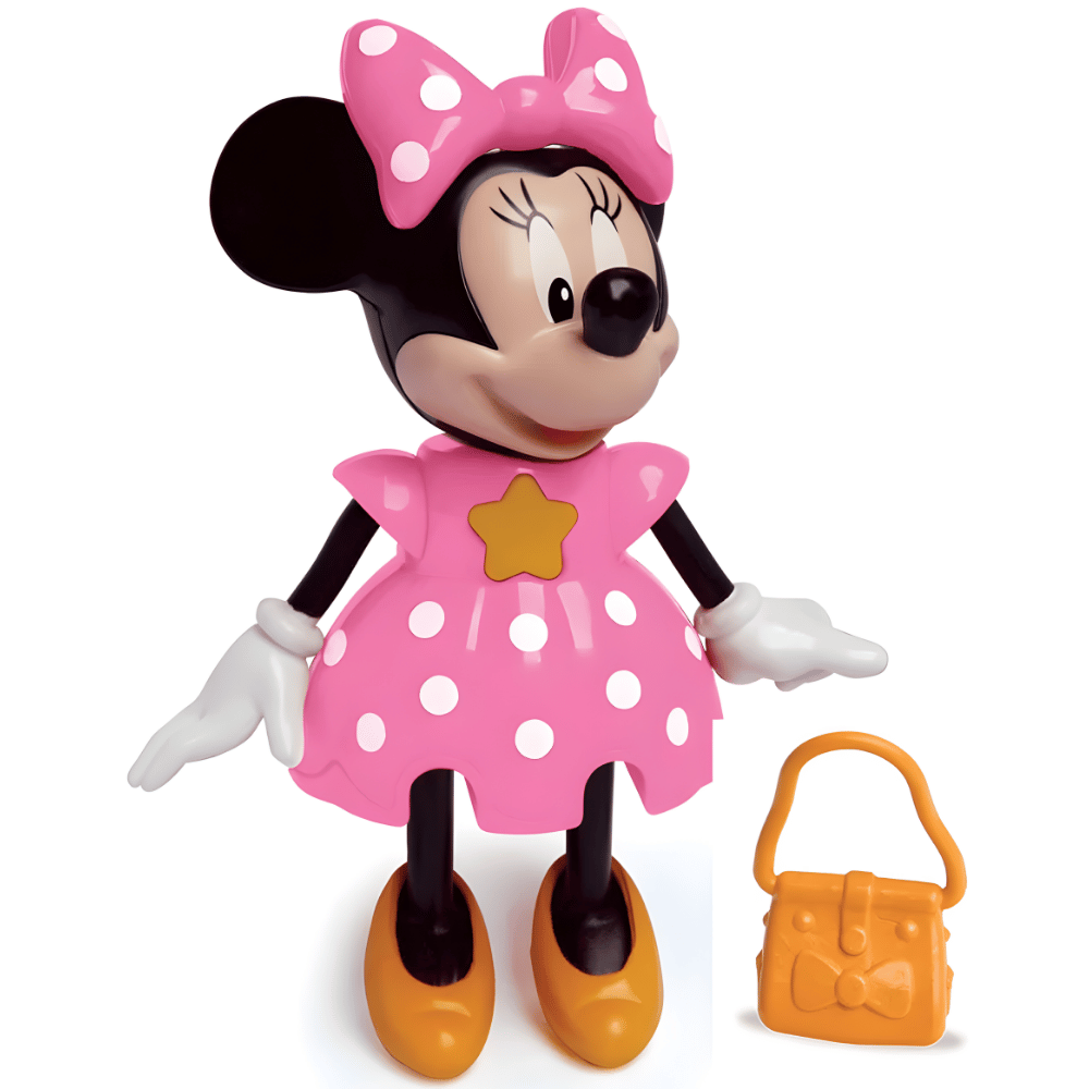 A Minnie é uma ratinha adorável que adora conversar e contar histórias. Tem o corpo articulado e uma linda bolsinha para passear. Para completar o charme, a estrelinha no vestido quando pressionada acende uma luz e a Minnie começa a contar suas historinhas. São 3 historinhas para ouvir!