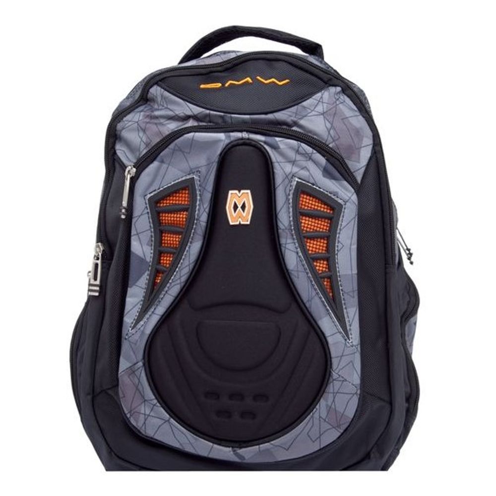 Mochila DMW Boys Grafite, com estampa abstrata em tons de cinza, possui detalhe em alto relevo, alças de ombro reguláveis com 42cm de comprimento e fecho por zíper.