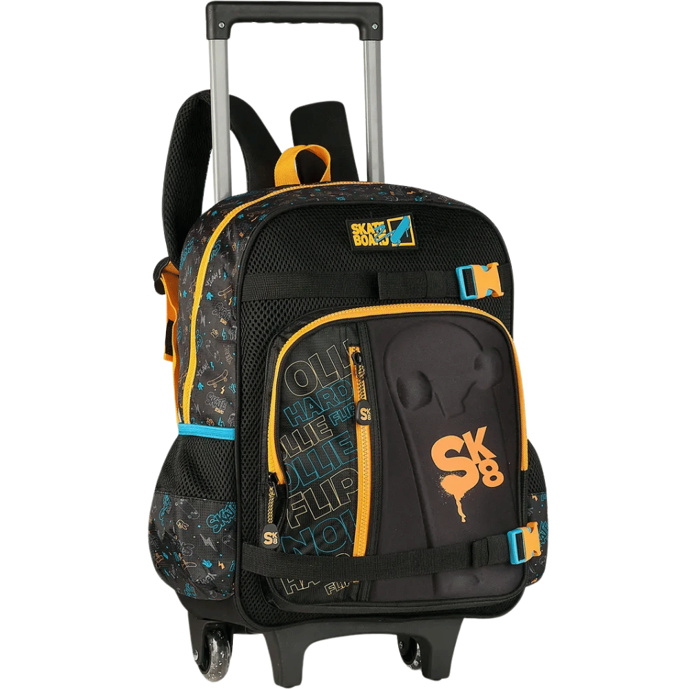 A Mochilete Escolar Infantil SK8 da Clio é perfeita para acompanhar a rotina das crianças com muito estilo e praticidade. Com design moderno inspirado no universo do skate, ela conta com rodinhas resistentes e alça retrátil que facilitam o transporte no dia a dia escolar. Seu grande diferencial é o suporte exclusivo para guardar o skate, garantindo mais organização e segurança. Espaçosa e funcional, é ideal para levar cadernos, estojos e todos os itens essenciais com conforto e personalidade.