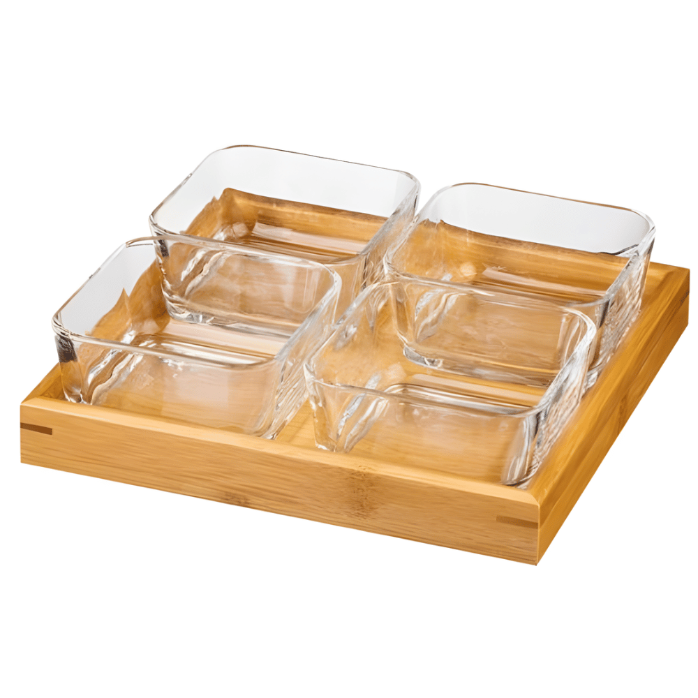 Petisqueira Bambu C/ 4 Bowls de Vidro - Flux