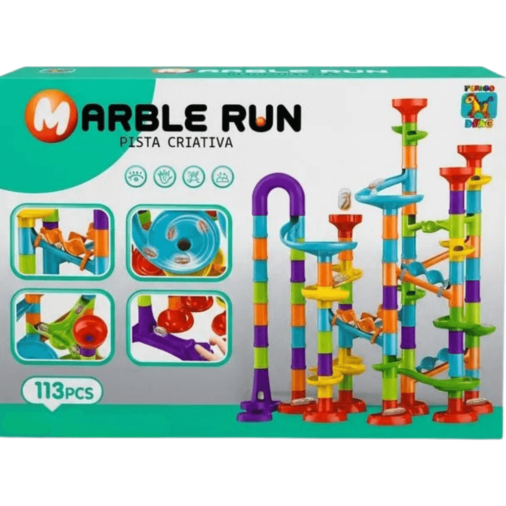 A Marble Run Pista Criativa 113 Peças da Futuro é um convite à imaginação e à engenharia em miniatura. As crianças podem montar o percurso como quiserem, criando túneis, curvas e descidas para as bolinhas de gude deslizarem em alta velocidade. Cada montagem é uma nova experiência, estimulando o raciocínio lógico, a coordenação motora e a criatividade. Com cores vibrantes e encaixes firmes, o brinquedo transforma o aprendizado em diversão, incentivando o pensamento construtivo e o prazer de ver o resultado ganhar movimento. Um desafio inteligente e empolgante, com a qualidade e o encanto da Futuro.
