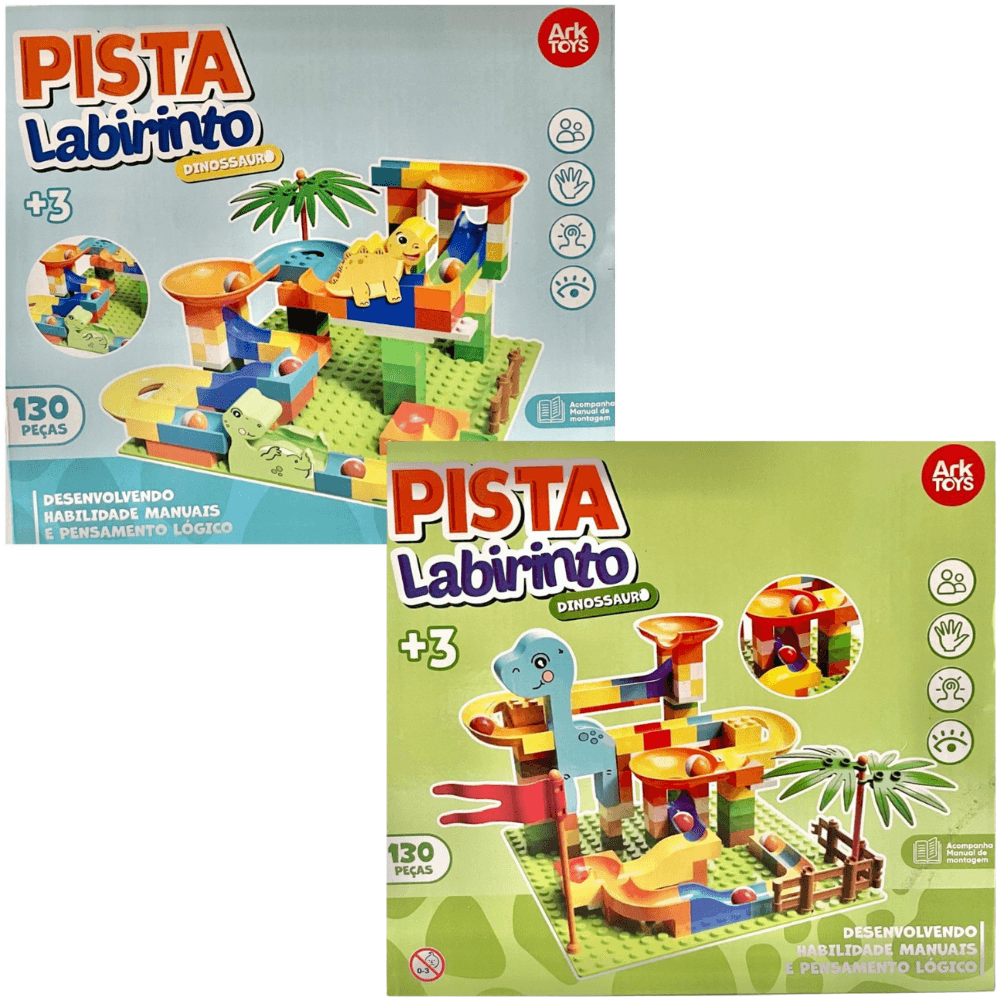 Uma aventura jurássica cheia de movimento e criatividade! A Pista Labirinto Dinossauro da Ark Toys vem com 130 peças para montar e criar percursos incríveis, onde a bolinha desce em meio a curvas, rampas e surpresas pré-históricas. Indicada para crianças a partir de 3 anos, estimula a coordenação motora, o raciocínio lógico e a paciência, tudo isso enquanto diverte com o tema que os pequenos adoram: dinossauros! Montar é parte da brincadeira, e ver a bolinha completar o trajeto é pura satisfação. Um brinquedo que entretém e desafia na medida certa.