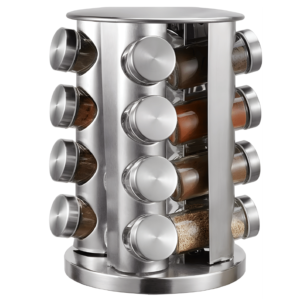 Deixe sua cozinha mais organizada, prática e elegante com o Porta Temperos Giratório Flux com 16 Potes. Ideal para armazenar seus condimentos e manter todos os temperos sempre à mão durante o preparo das refeições.Com base giratória, o organizador facilita o acesso aos potes e otimiza o espaço na bancada ou no armário. Os 16 potes de vidro com capacidade de 110ml possuem tampas dosadoras, permitindo controlar melhor a quantidade de tempero utilizada.Fabricado com vidro e aço inox, o conjunto possui design moderno, resistente e fácil de limpar, combinando perfeitamente com qualquer estilo de cozinha.Destaques do produto: