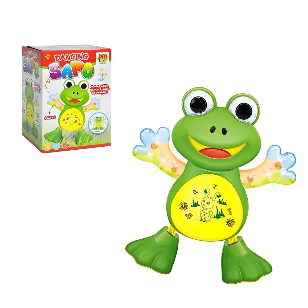 Esse divertido e chamativo sapo com certeza vai te manter entretido por muitas horas! Com ele você poderá estimular sua imaginação criando diversas histórias se aventurando pelos arredores! O sapo conta com luzes brilhantes e lindas, que ao ser combinada com os movimentos de dança dos brinquedos, você irá criar espetáculos maravilhosos!