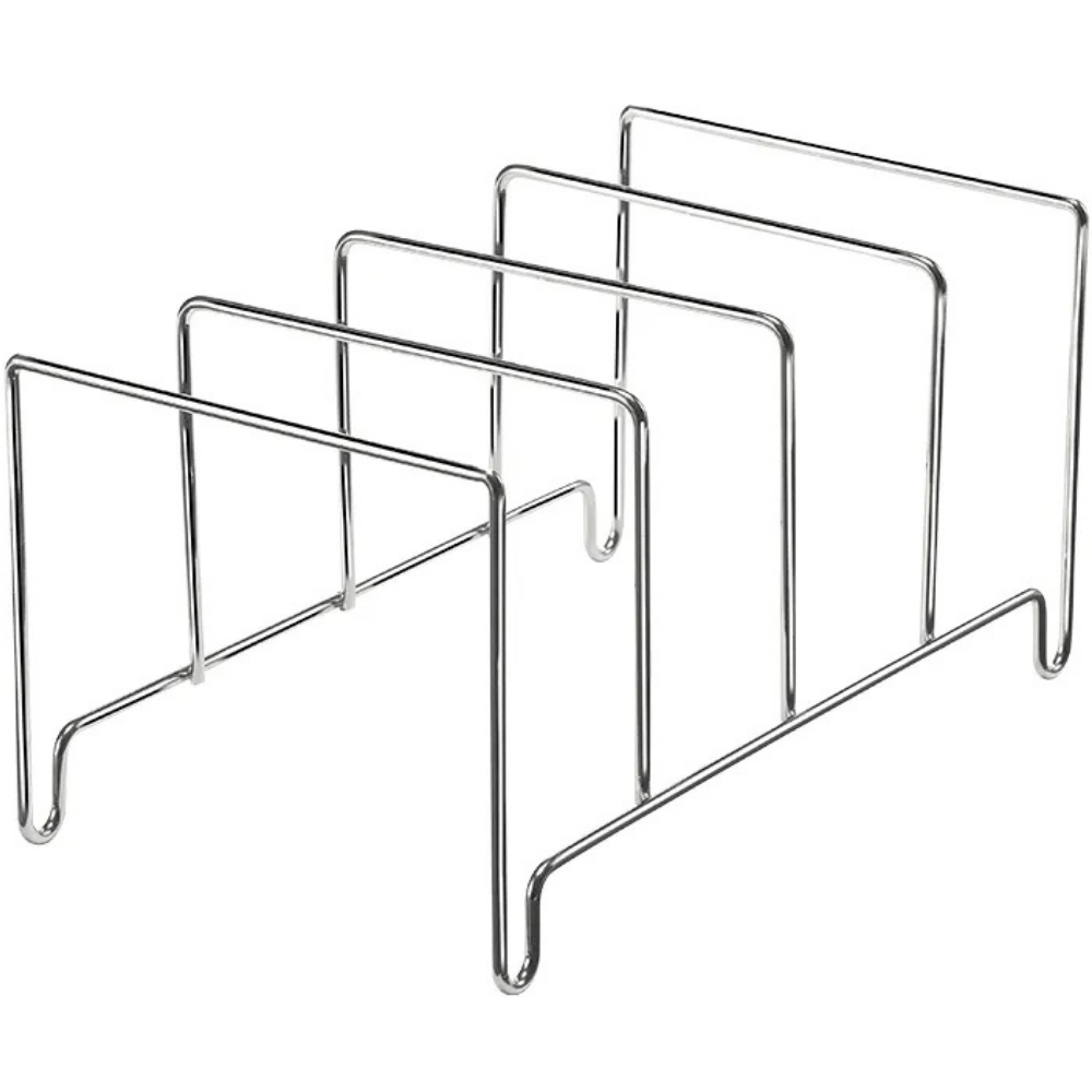 Este suporte cromado para refratários com capacidade para quatro peças oferece uma forma prática de organizar assadeiras e recipientes que geralmente ocupam espaço e dificultam o acesso no armário. A estrutura metálica mantém tudo alinhado, evitando arranhões e permitindo retirar cada item sem empilhar ou fazer esforço desnecessário. É uma solução que melhora a ventilação entre as peças, facilita a limpeza e cria uma sensação imediata de ordem na cozinha, tornando o preparo das refeições mais fluido ao deixar os refratários sempre visíveis e prontos para uso.