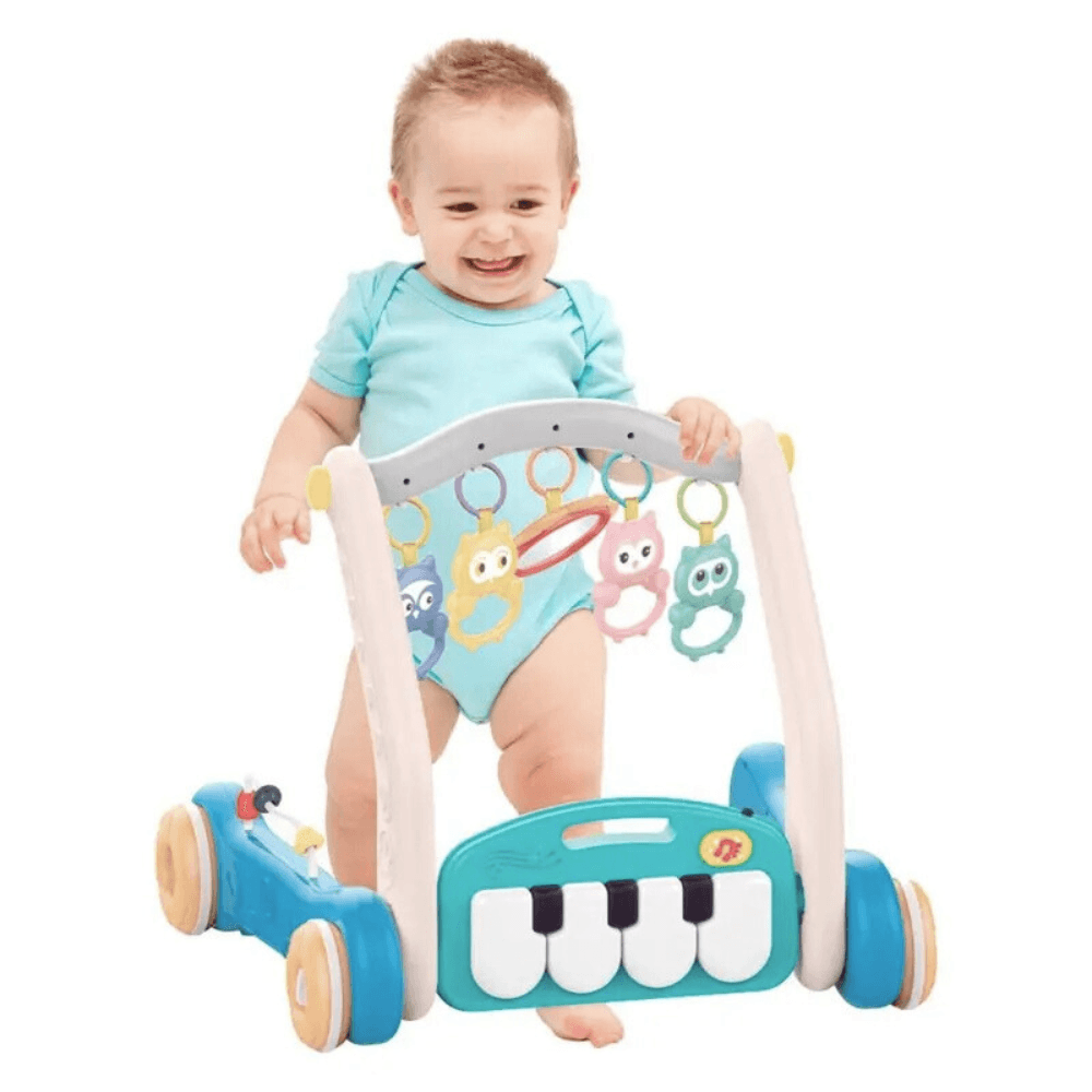 O Guta Guti Tapete Atividades Baby 2 em 1 2M+ da DM Toys foi desenvolvido para acompanhar diferentes fases do desenvolvimento, funcionando como tapete de atividades e também como andador. No modo tapete, oferece estímulos visuais e sensoriais com espelho e brinquedos suspensos estilo móbile, incentivando a coordenação motora, o alcance e a exploração. O pianinho integrado amplia a interação com três modos distintos: música, notas individuais e um modo em que cada tecla toca parte de uma melodia, estimulando percepção auditiva e relação de causa e efeito. Ao se transformar em andador, passa a incentivar os primeiros passos com mais apoio. É uma proposta completa que reúne movimento, som e estímulos variados em um único produto funcional, pensado para manter o bebê ativo e engajado em diferentes etapas do crescimento.