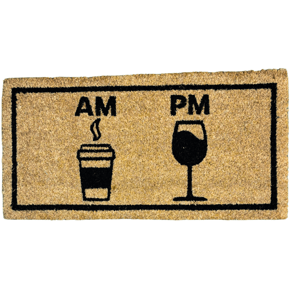 O Tapete Fibra de Coco AM PM 30x60cm 17430 EmCasaTem é uma peça funcional que une utilidade e personalidade logo na entrada do ambiente. Produzido em fibra de coco, auxilia na retenção de sujeiras trazidas pelos calçados, contribuindo para manter o interior mais limpo e organizado. O design traz a inscrição “AM” com um copo de café estilizado abaixo e “PM” acompanhado de uma taça, criando uma proposta visual que remete aos diferentes momentos do dia, do início produtivo às horas de relaxamento. Com 30x60cm, é ideal para portas de entrada, agregando praticidade e um toque decorativo que valoriza o espaço.