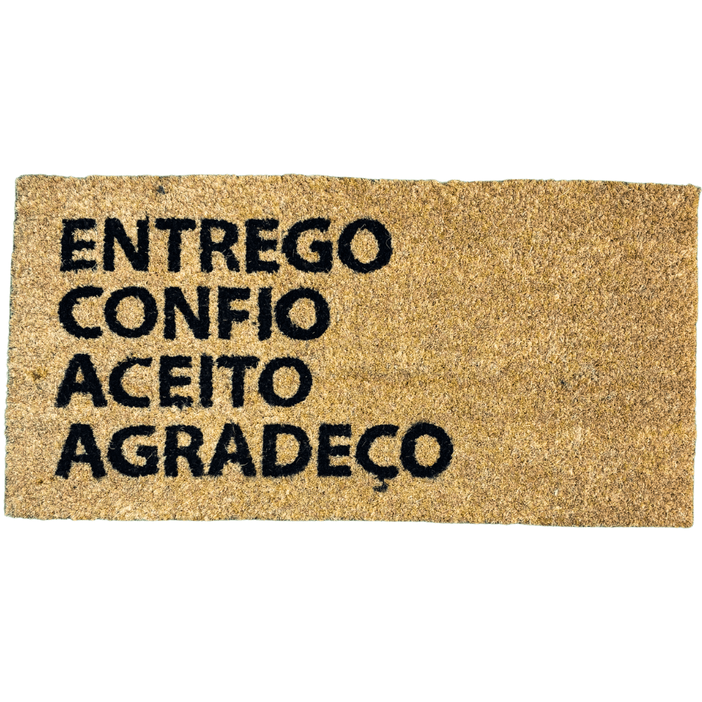 Tapete de Fibra de Coco Entrego Confio Aceito Agradeço - Em Casa Tem